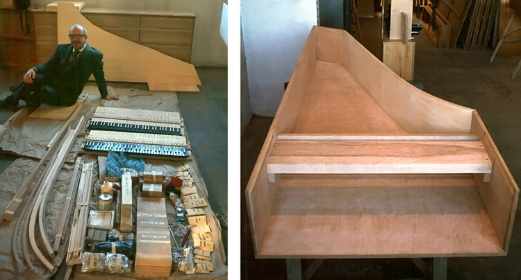 De regreso a la Argentina luego de mis años de estudiante en Londres, en 1972 encargué un “basic double-French kit” a Frank Hubbard, quien desde Boston (EEUU) fue uno de los pioneros en el redescubrimiento de los claves basados en modelos tradicionales. [Hubbard Harpsichords continúa fabricando kits y claves bajo la dirección de Hendrik Broekman, y son siempre confiables proveedores de repuestos tales como lengüetas y plectros].