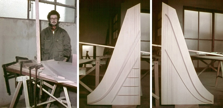 Para cuando Hubbard produjo mi kit en Boston, lo despachó, llegó a la Argentina, la Aduana me notificó y logré—tras meses de trámites—recibirlo, era ya Noviembre de 1973. Véase abajo a la izquierda el contenido del cajón que me envió Hubbard—con mi padre Angelo—excepto la caja con paredes (que solamente requiere terminación y junta a inglete con estrías) y clavijero en posición, que se pueden ver a la derecha.