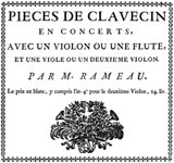 J.-Ph. Rameau - Pieces de Clavecin en Concerts avec un Violon et une Viole 2e. Concert: La Laborde, La Boucon, L'Agaçante, Menuets 3e. Concert: La Lapoplinière, La Timide, Tambourins G. F. Handel - Water Music Suite in F: Ouverture: Largo-Allegro, Adagio e Staccato, Allegro-Andante-Allº D.C., Presto (Passepied), Air, Suite in D: Allegro, (Alla Hornpipe), Lentement (Loure), (Aire: Rigaudon), Trumpet Minuet |
