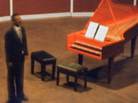 | This was not a public event, although it had been prepared in advance. Curator Mimi Waitzman had kindly tuned the 6 most important harpsichords in the collection, and I repeated the recital I had given in Bray a few weeks earlier. Soon visitors realised what was going on: as Ms Waitzman and I went from room to room, a group of more than a dozen visitors followed us attending this itinerant recital. | |