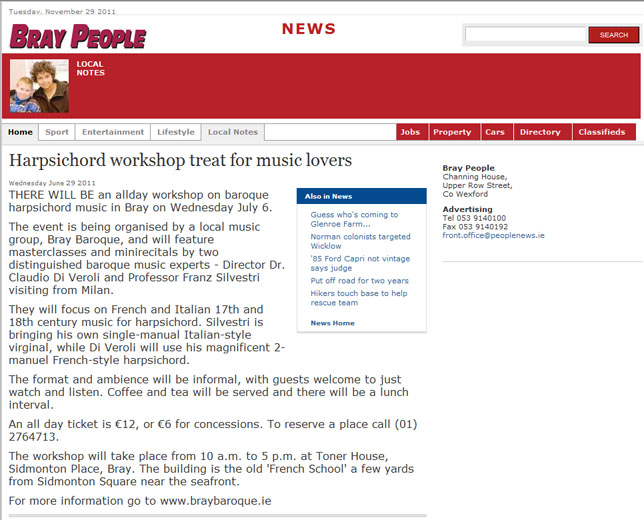7. "Harpsichord workshop treat for music lovers". Bray People. Bray, Rep. Ireland. June 29, 2011. Retrieved June 17,2012