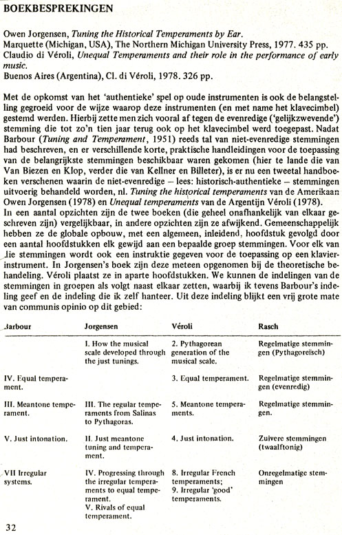 12. Rasch, Rudolf A. (1980). "Owen Jorgensen: Tuning the historical temperaments by ear (1977) and Cl. Di Veroli: Unequal Temperaments and their role in the performance of early music (1978)". Stimulus, The Ancient Music Journal of the University of Utrecht (1980): 32–37.