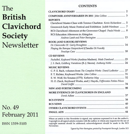 16. Cave, Penelope (February 2011). "Review of "Playing the Baroque Harpsichord: essays on interpretation and performance, with relevant topics for the Clavichord and Organ"". The British Clavichord Society Newsletter. 49: 18–22.